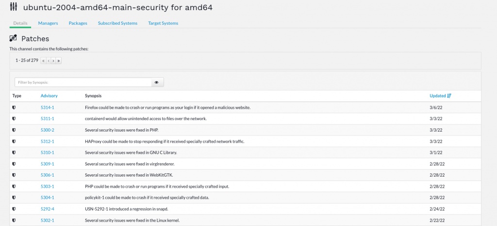 Pero ahora con SUSE Manager 4.2.5, lanzado el 28 de febrero de 2022, ¡puede ver y usar los metadatos de este parche! De hecho, simplemente se integra en el proceso de sincronización de canales para los canales de Ubuntu.